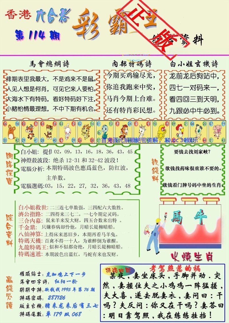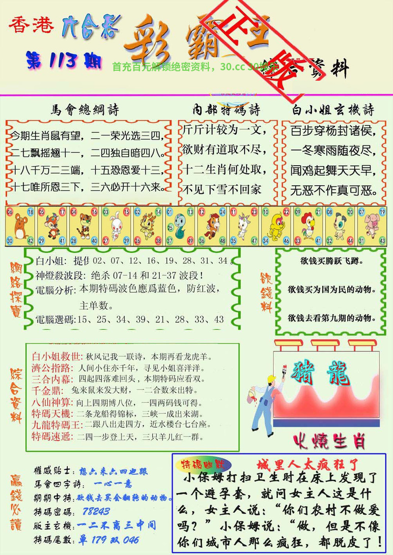 | 112期:单【牛羊蛇猪】双【龙鼠马猴】开:龙02准 |