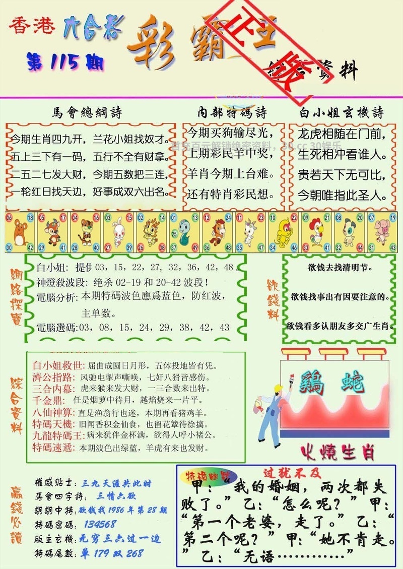| 115期:单【猪兔牛蛇】双【虎马鼠龙】开:蛇01准 |